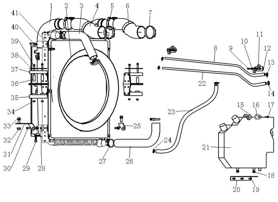 Большой радиатор (Цзинан Бейер) для двигателя Howo, Sitrak MC11, MC13 WG9770530052/1 (Номер на чертеже 1.1)