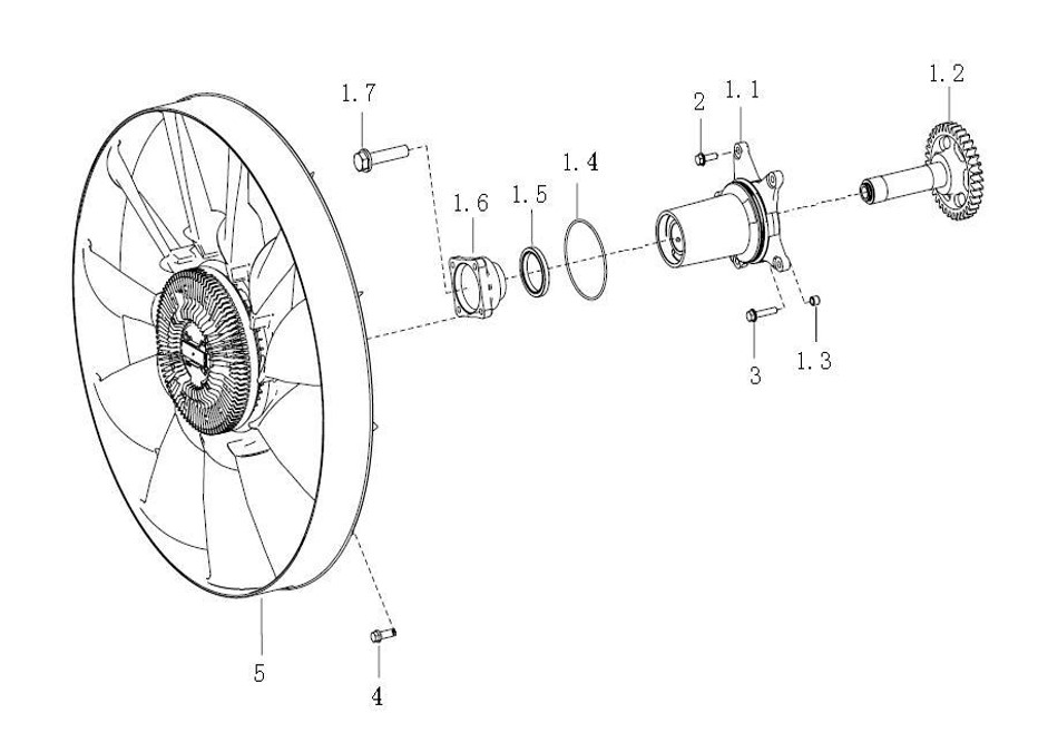 Вентилятор для двигателя Howo, Sitrak MC11, MC13 202V06600-7050 (Номер на чертеже 5)